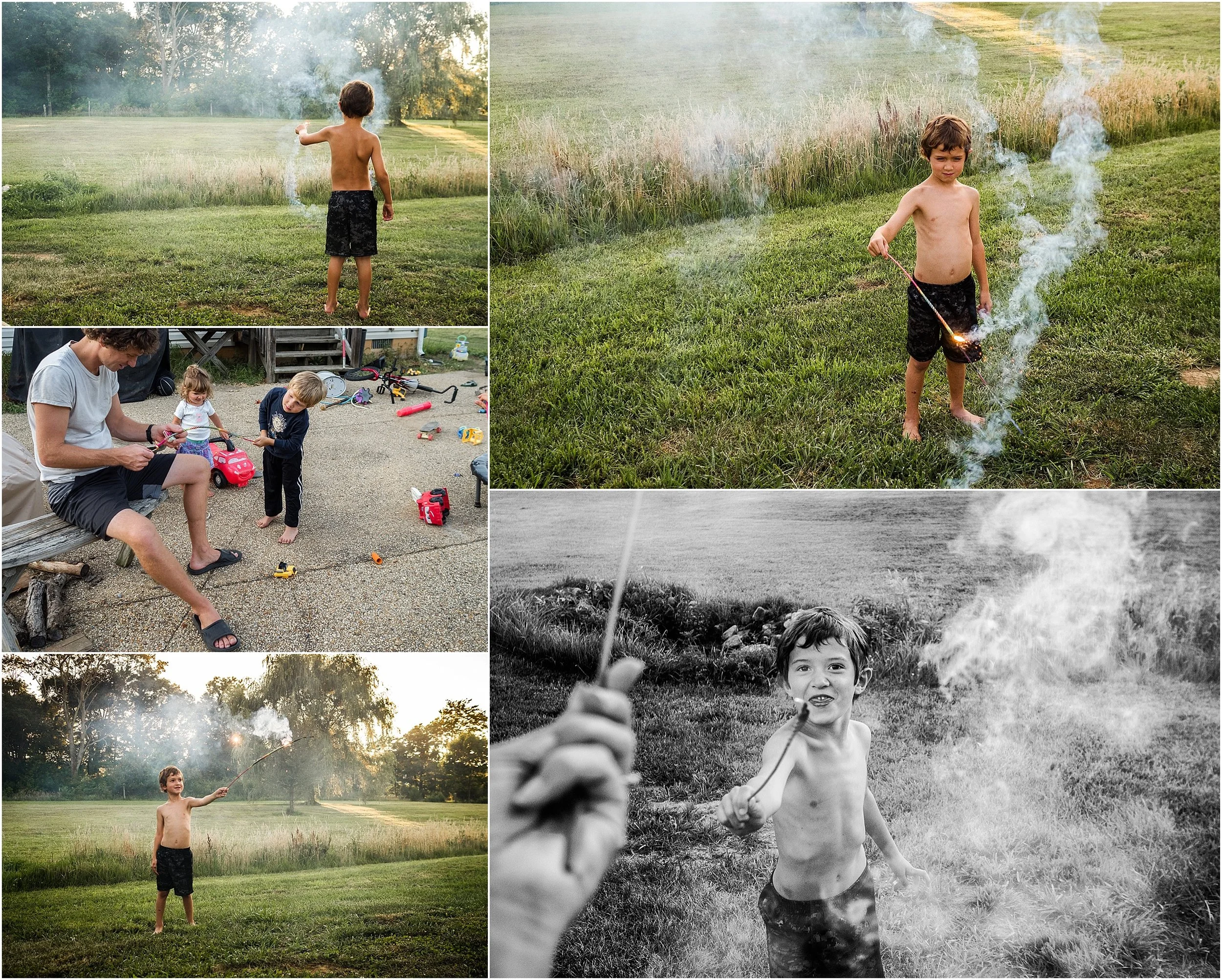 This month also included some of my favorite summer traditions, like the fireworks in Waynesboro at the park and the Stuarts Draft parades and carnival.  I ventured out alone with the 3 of you for the old car parade, which was pretty fun until you (Mason) got very upset with me for something and then said the parade was way too short (it was) and how you wished we would have never even gone to it.  The next day was much better....except Rylan, you weren't allowed to eat any of the candy from the parade since you refused to eat your food 2 meals in a row.  But riding some fun things at the carnival made it better.  In Waynesboro the next day, the fireworks show seemed better than ever this year.  And Elli, you loved the fireworks!  Mason, you found a creative place to sit during the show, and Daddy and Rylan joined you at the end.